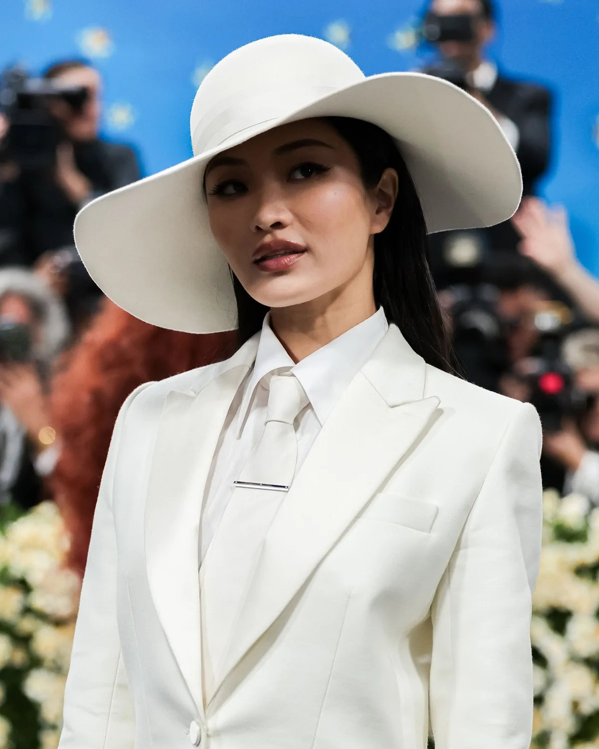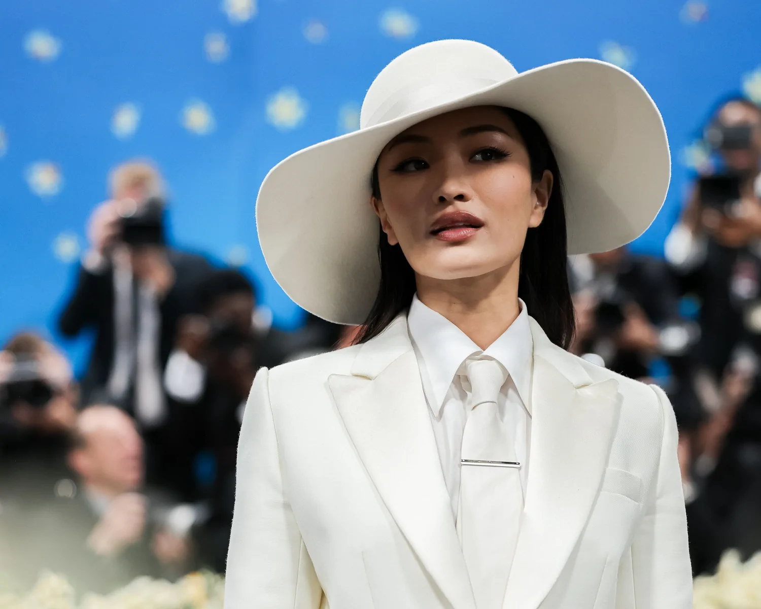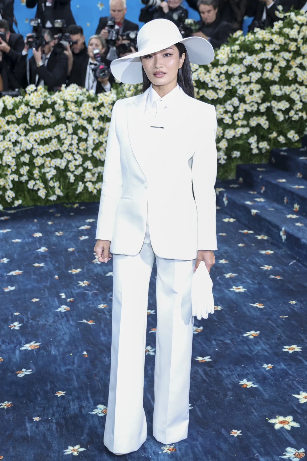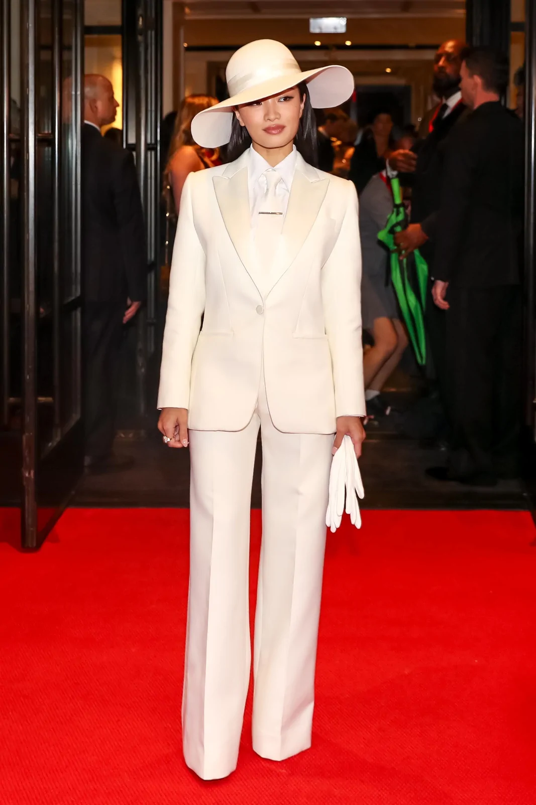 Anna Sawai made her much-anticipated Met Gala debut at the 2025 event celebrating “Superfine: Tailoring Black Style” on May 5 in New York. In a striking nod to the gala’s theme and the enduring legacy of Black dandyism, the Emmy-winning actress stepped onto the red carpet in a meticulously tailored custom Dior ensemble. Her look featured a pristine white suit structured with masculine precision—an artful interplay of sharp tailoring and subtle feminine refinement. The design included a crisp white poplin shirt, a delicate white tie, and a wide-brimmed hat that not only elevated the overall aesthetic but also underscored the “Tailored for You” dress code mandated by the evening, blending heritage with modern innovation.