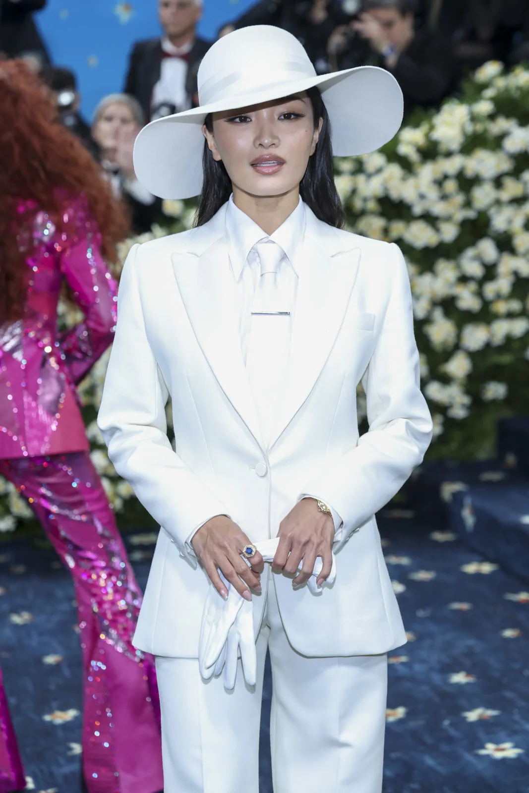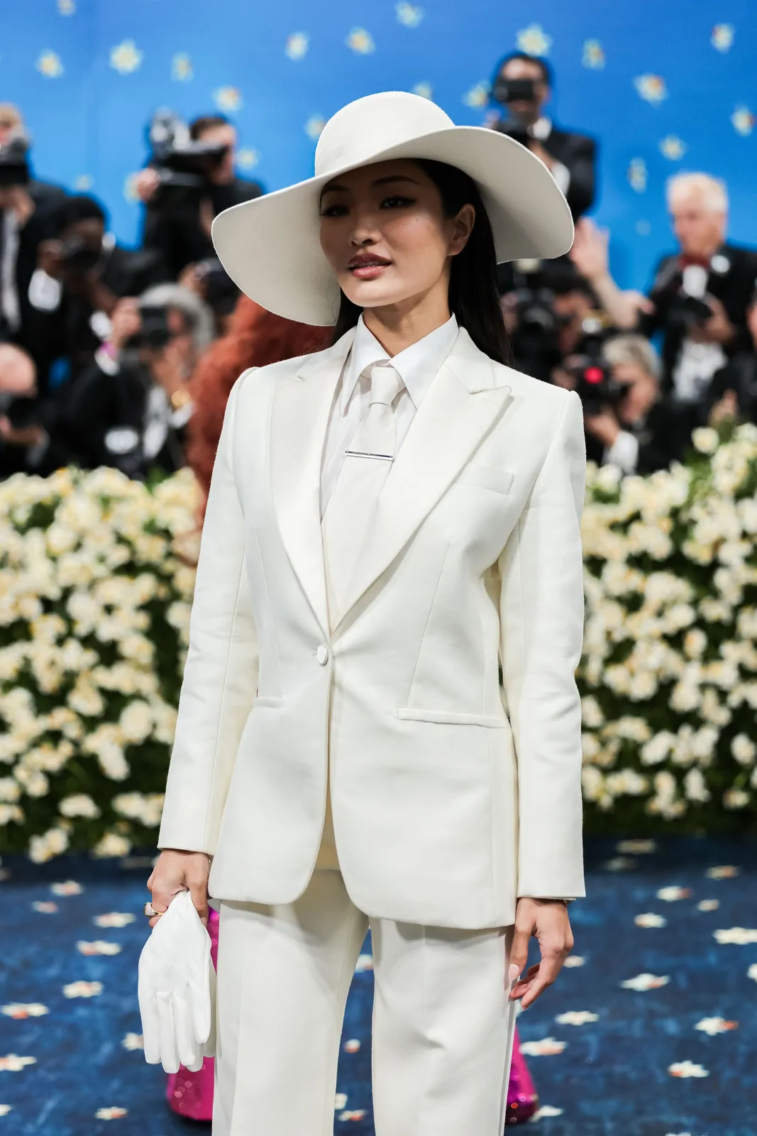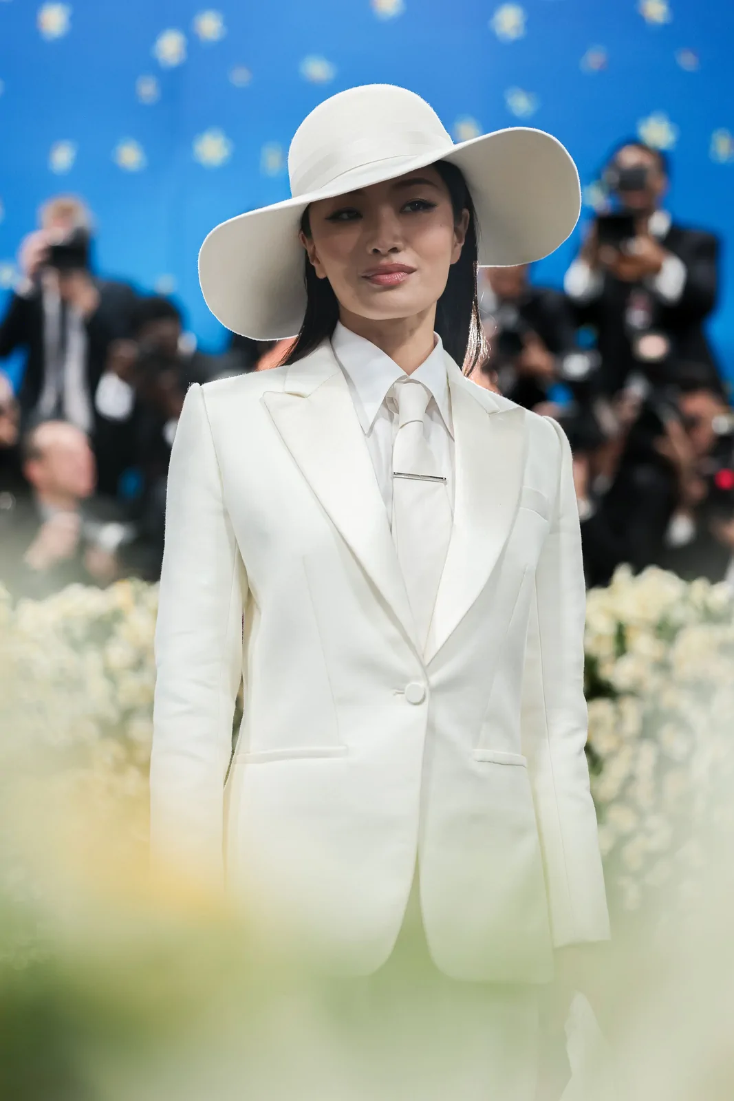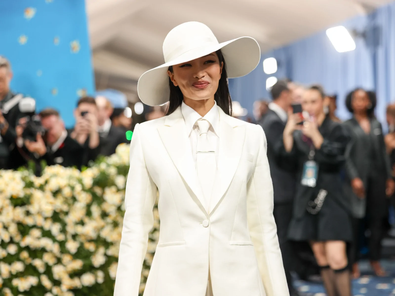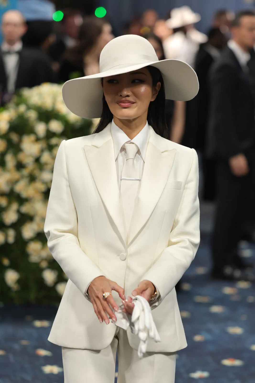 Anna Sawai made her much-anticipated Met Gala debut at the 2025 event celebrating “Superfine: Tailoring Black Style” on May 5 in New York. In a striking nod to the gala’s theme and the enduring legacy of Black dandyism, the Emmy-winning actress stepped onto the red carpet in a meticulously tailored custom Dior ensemble. Her look featured a pristine white suit structured with masculine precision—an artful interplay of sharp tailoring and subtle feminine refinement. The design included a crisp white poplin shirt, a delicate white tie, and a wide-brimmed hat that not only elevated the overall aesthetic but also underscored the “Tailored for You” dress code mandated by the evening, blending heritage with modern innovation.