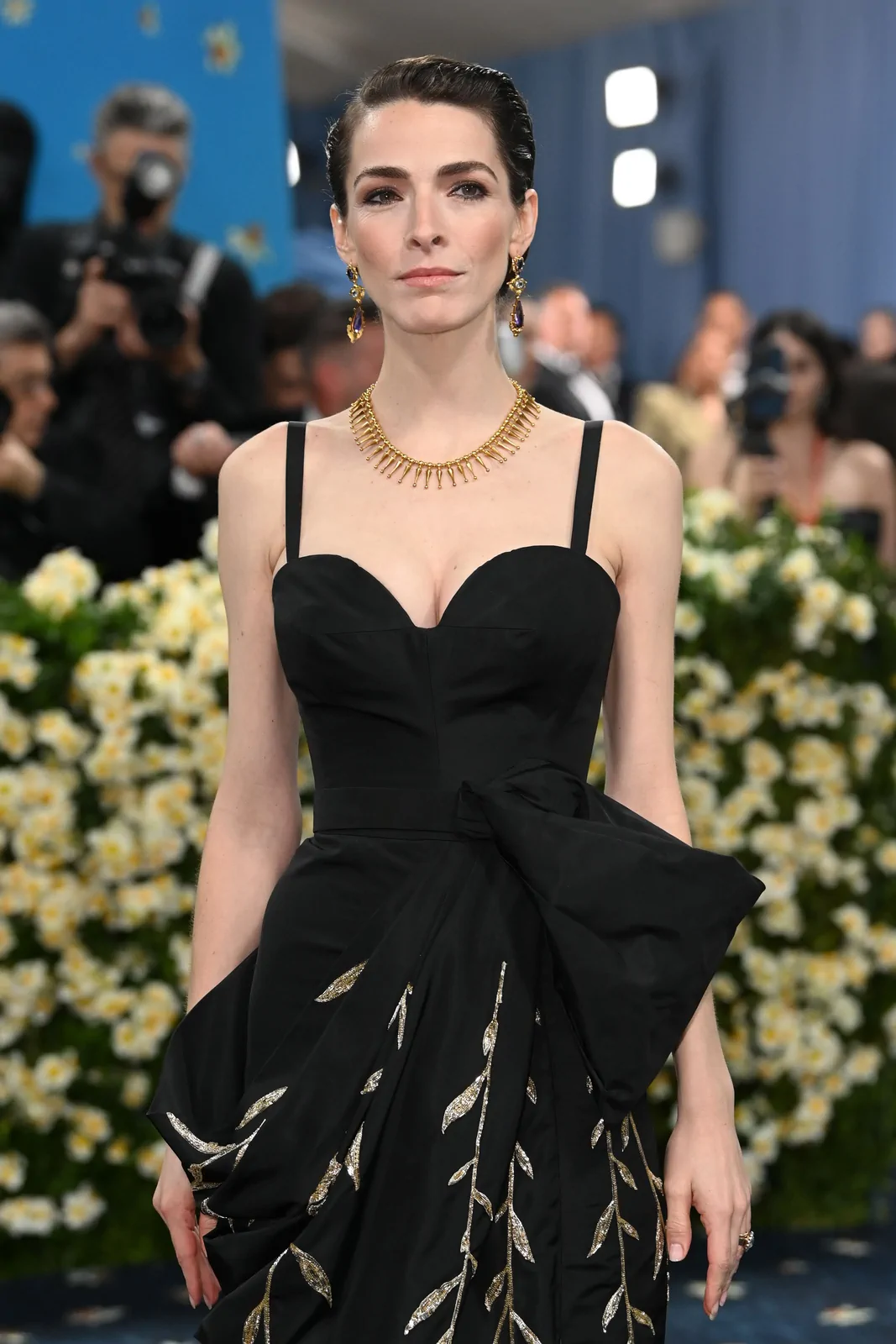 Bee’s ensemble was a masterclass in modern tailoring reinterpreted through a nuanced, gender-fluid lens. She donned a sharply tailored, double-breasted jacket in a rich midnight blue, its sculptural shoulders and subtly cinched waist hinting at the structured elegance of traditional menswear. Yet, the design was unmistakably progressive—with delicate metallic threading along the lapels and cuffs that caught the light with each step, adding an element of theatrical shimmer. Paired with impeccably fitted trousers that echoed the jacket’s architectural lines, her attire was both a salute to heritage and a statement of forward-thinking style.