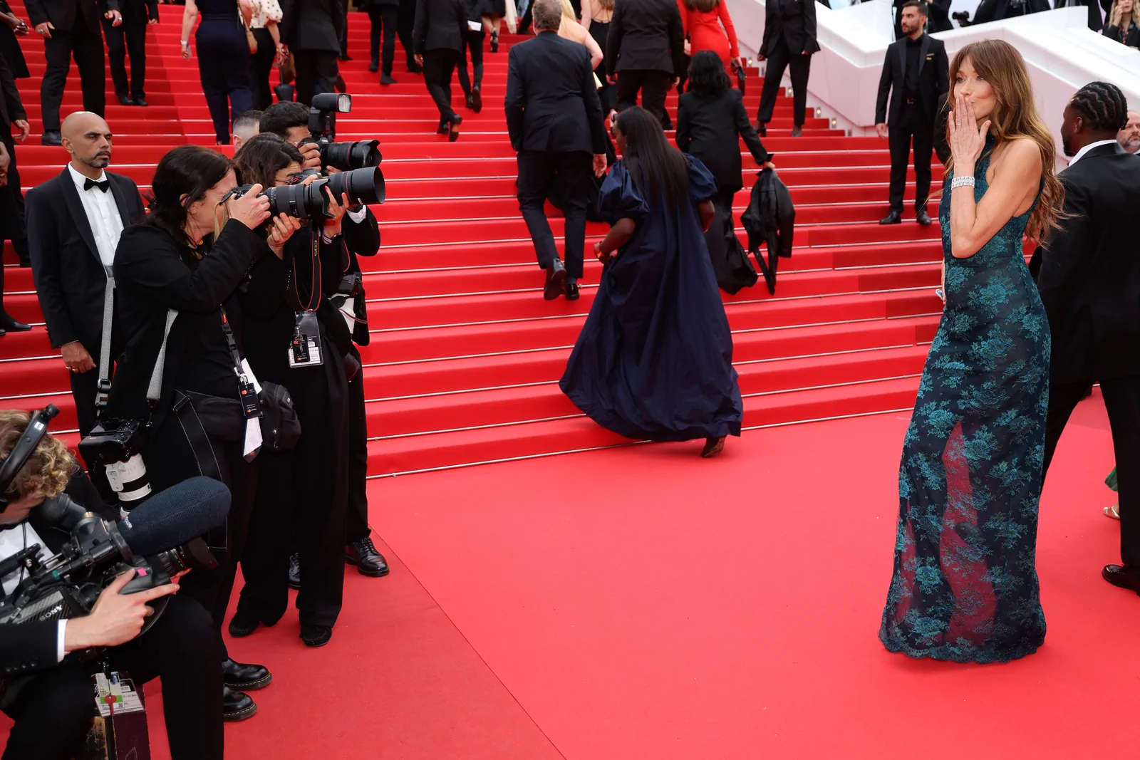 At the 78th Cannes Film Festival on May 19, 2025, Carla Bruni graced the red carpet for the Highest 2 Lowest premiere by redefining French elegance with an effortlessly modern twist. Ever the icon of refined style, she strolled the Palais des Festivals in a custom Saint Laurent creation by Anthony Vaccarello—a one-shoulder masterpiece in a sumptuous hue that balanced impeccable tailoring with fluid, sculptural draping.