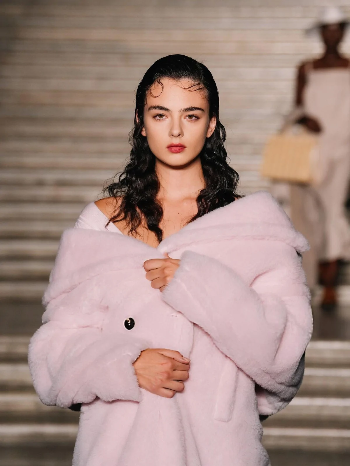 Deva Cassel made a striking appearance at the Max Mara Resort 2026 fashion show, held at the majestic Royal Palace of Caserta on June 17, 2025. Her look was described as simple yet rigorous, embodying a spontaneous and luminous femininity that perfectly complemented the grandeur of the venue.
