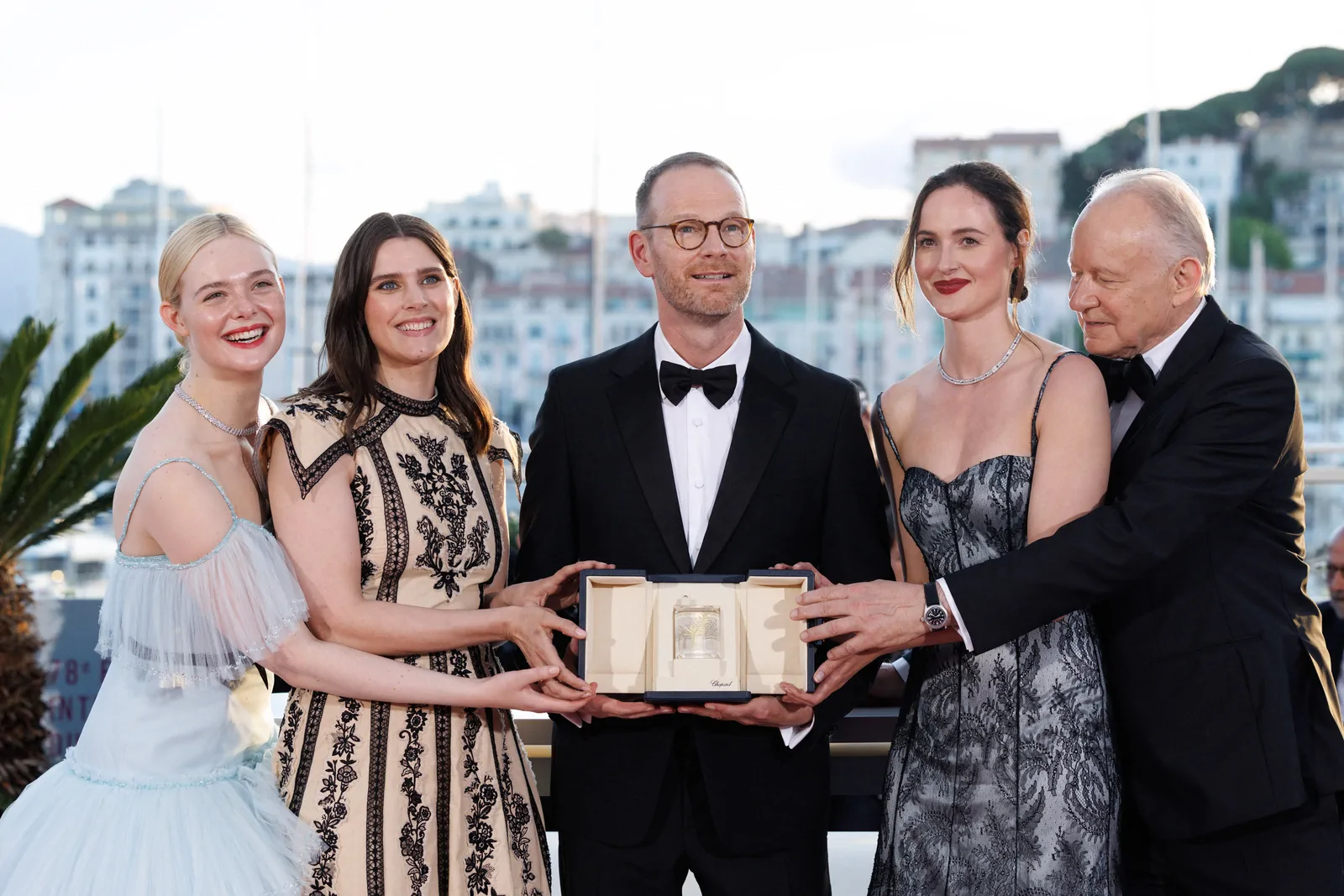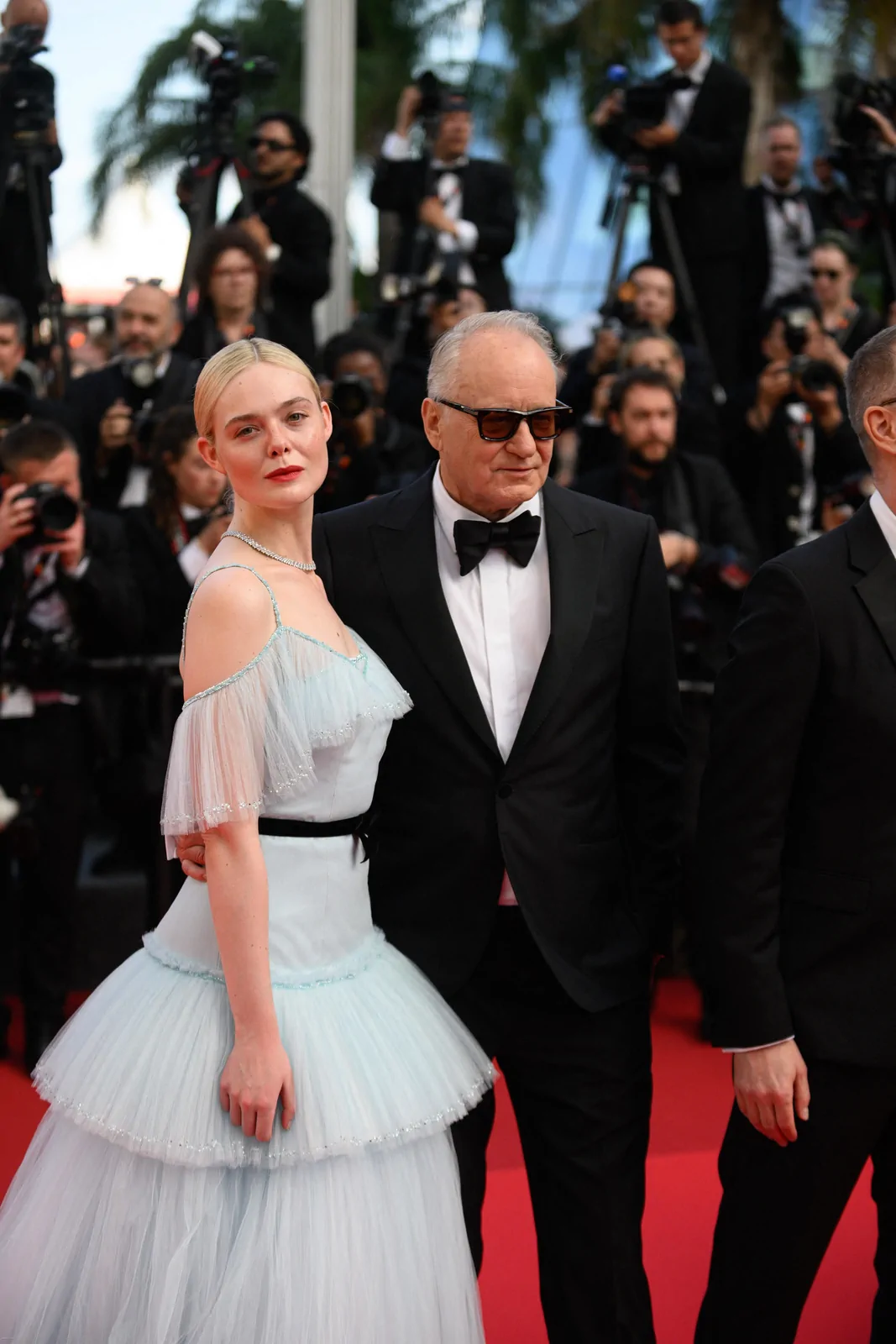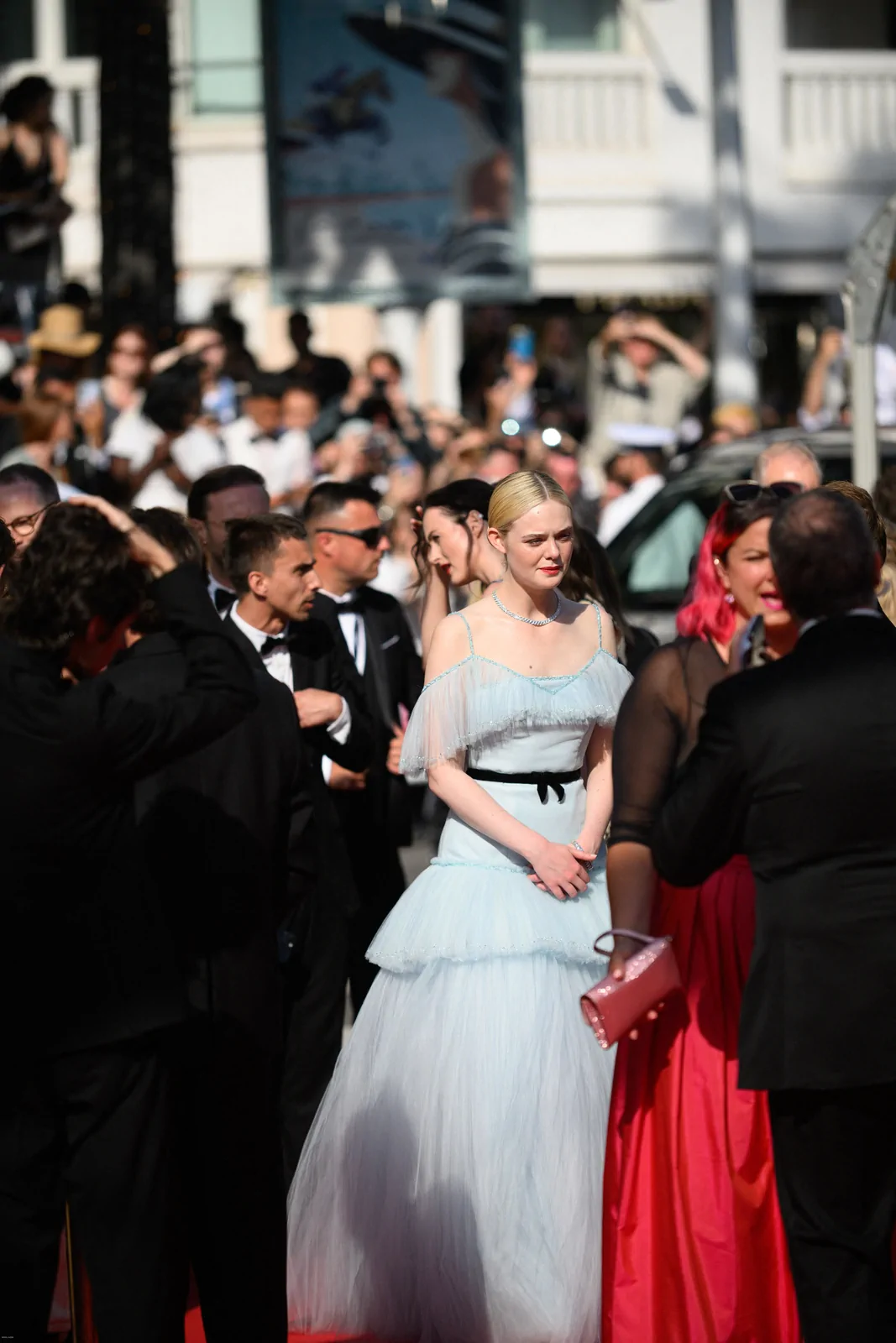 Elle Fanning stole the spotlight at the Closing Ceremony of the 78th Cannes Film Festival on May 24, 2025, embodying a modern fairy-tale elegance along the storied red carpet. The American actress dazzled in a pastel blue Chanel gown—a dreamy creation crafted from silk, crepe, and tulle—that featured delicate ruffles, a romantic Bardot neckline, and a princess skirt gracefully cinched at the waist with a black ribbon belt. The look, combining a classical sense of refinement with a contemporary twist, underscored how Fanning’s style continually evolves to suit both her youthful spirit and mature elegance.