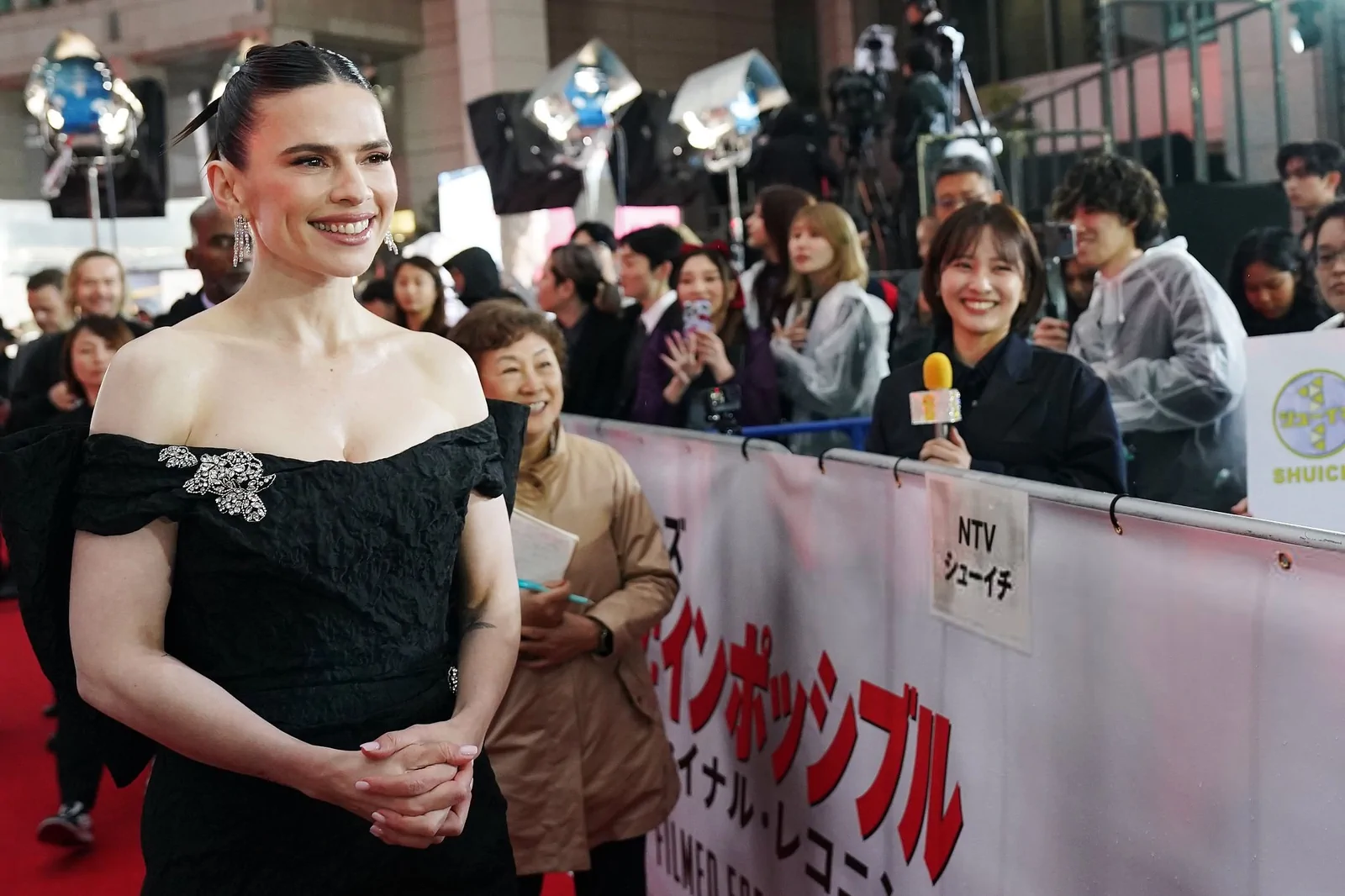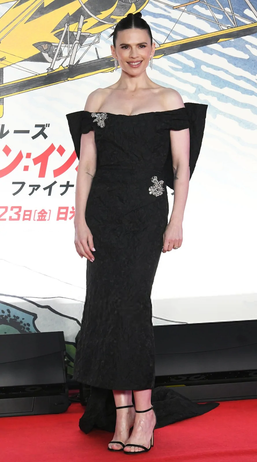Hayley Atwell turned heads at the Tokyo red carpet during the Japan premiere of Mission: Impossible – The Final Reckoning. The British star, known for her effortless elegance and strong screen presence, wowed in a glamorous black off-the-shoulder gown. The dress featured a graceful flowing train accentuated with tastefully placed silver brooches, a design choice that balanced modern chic with timeless red carpet glamour. Her poised appearance, set against the vibrant backdrop of Tokyo’s Metropolitan Government Building, underscored the excitement of the evening as the film—the final installment in the iconic franchise—prepared to captivate audiences in Japan starting May 23 2.