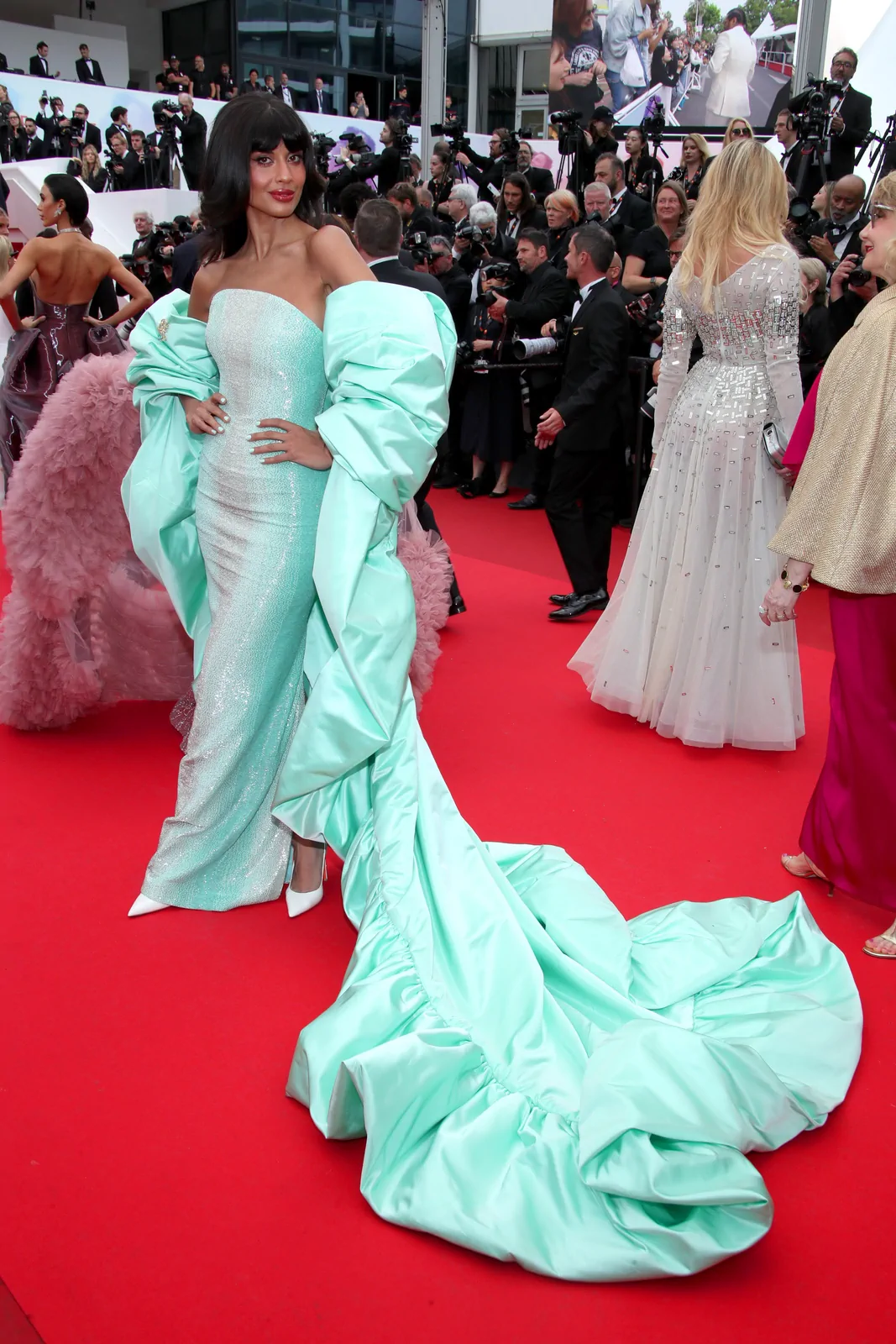 At the 78th Cannes Film Festival on May 19, 2025, Jameela Jamil electrified the red carpet at the Highest 2 Lowest premiere with an outfit that unmistakably spoke of fearless innovation and modern glamour. She embraced a light green sequin gown that shimmered with every step, its intricate design catching the light and exuding a sophisticated yet playful energy. Accentuating this striking look, Jameela paired the ensemble with a statement ruffled shawl that added a dynamic texture and visual drama, perfectly capturing the spirit of the evening.