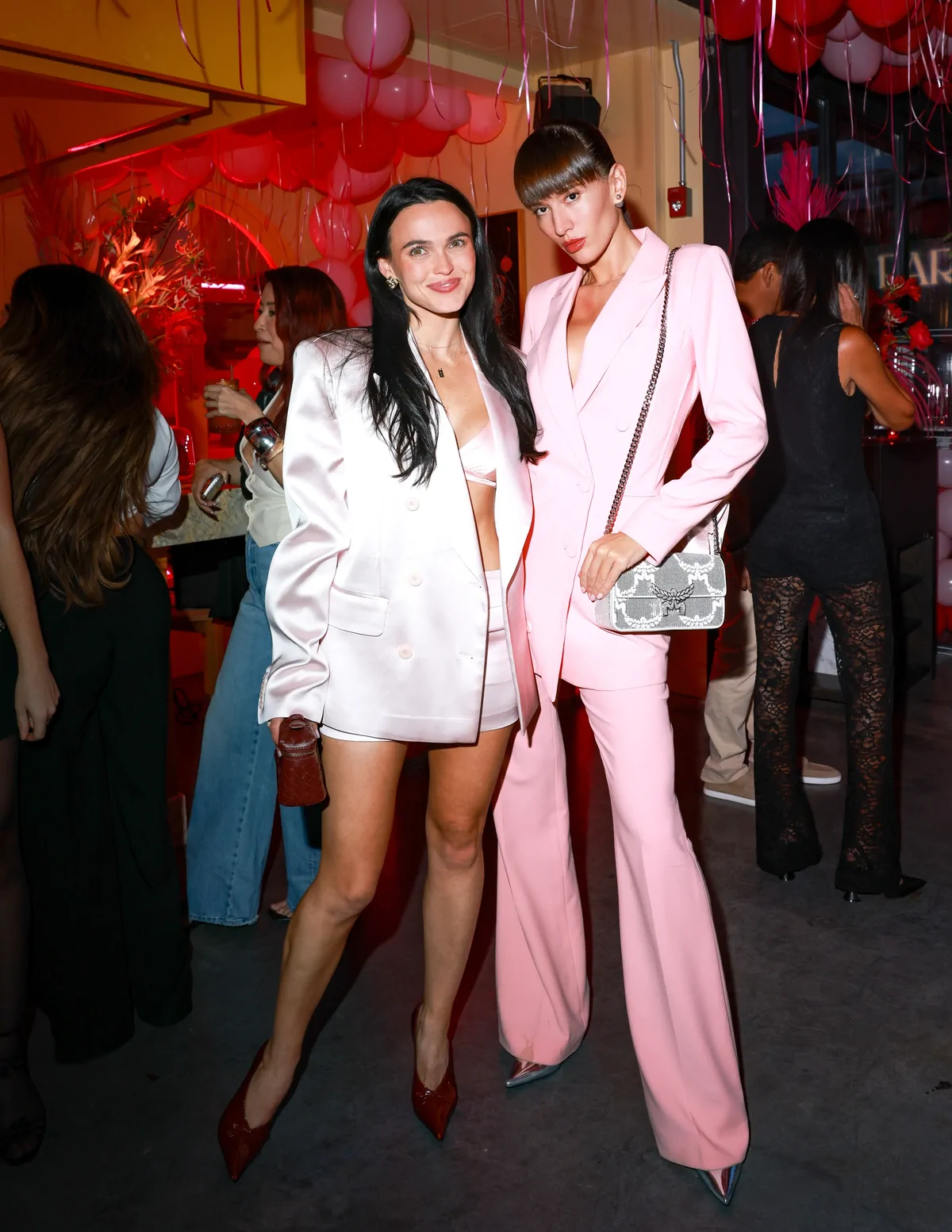While details on Tolstova’s specific look remain limited, the evening was marked by Paris Hilton’s signature pink aesthetic, with the socialite herself dazzling in a hot pink floral mini dress, accessorized with pink satin gloves, diamond silver designer shades, and a statement choker necklace. The launch party was a glamorous affair, reinforcing Hilton’s influence in the beauty industry through her 11:11 Beauty venture.