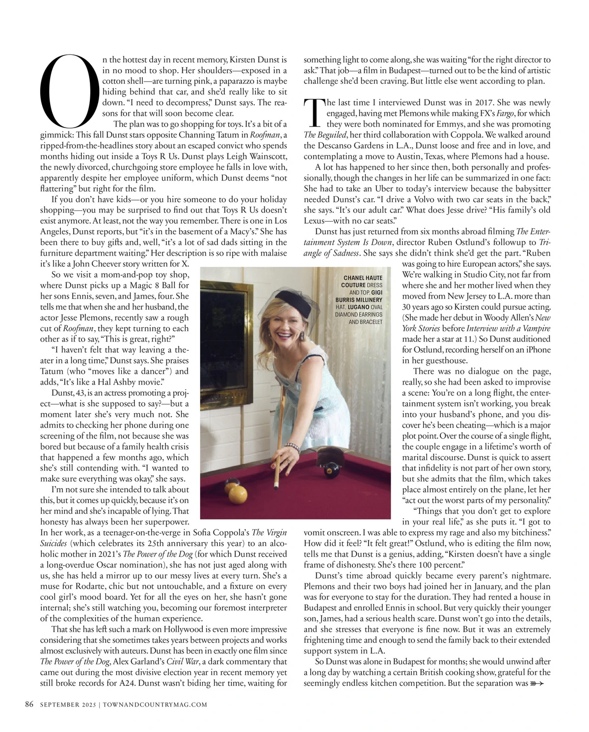 Kirsten Dunst – Town & Country Magazine September 2025 by admin August 23, 2025 1.7K Facebook Twitter Pinterest Tumblr Reddit Copy Link Kirsten Dunst previous post Jennifer Lawrence and Husband Enjoy Dinner and Bike Ride in NYC 08-21-2025 next post Kimberley Garner Stuns in Her green Bikini in Ibiza 08-20-2025 related articles Shania Twain – Hello Canada August 2025 Tate McRae – Beth Saravo Photoshoot September 2025 DuJour Magazine – Cannes Confidential Fall 2025