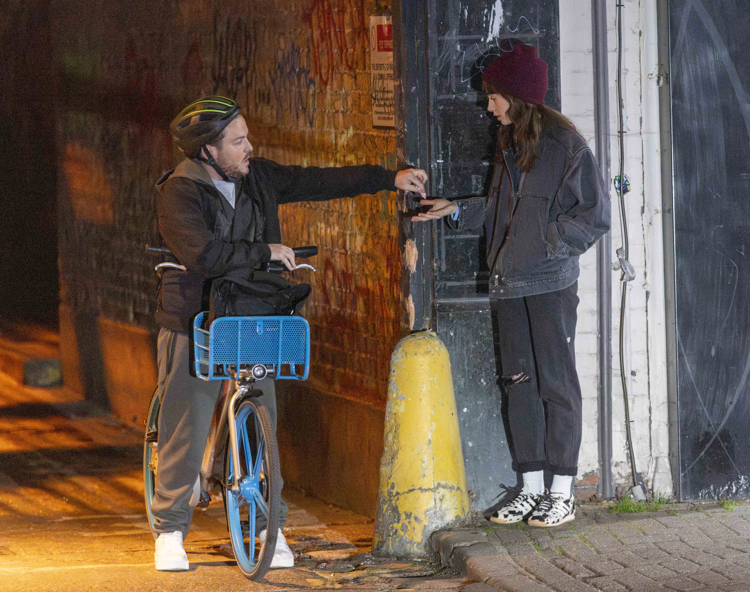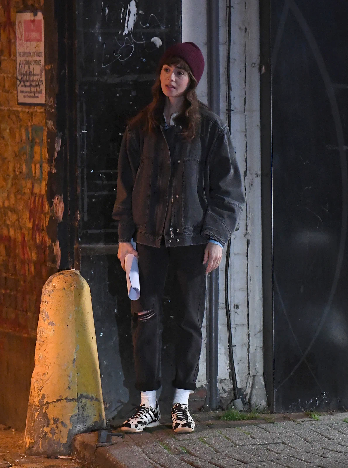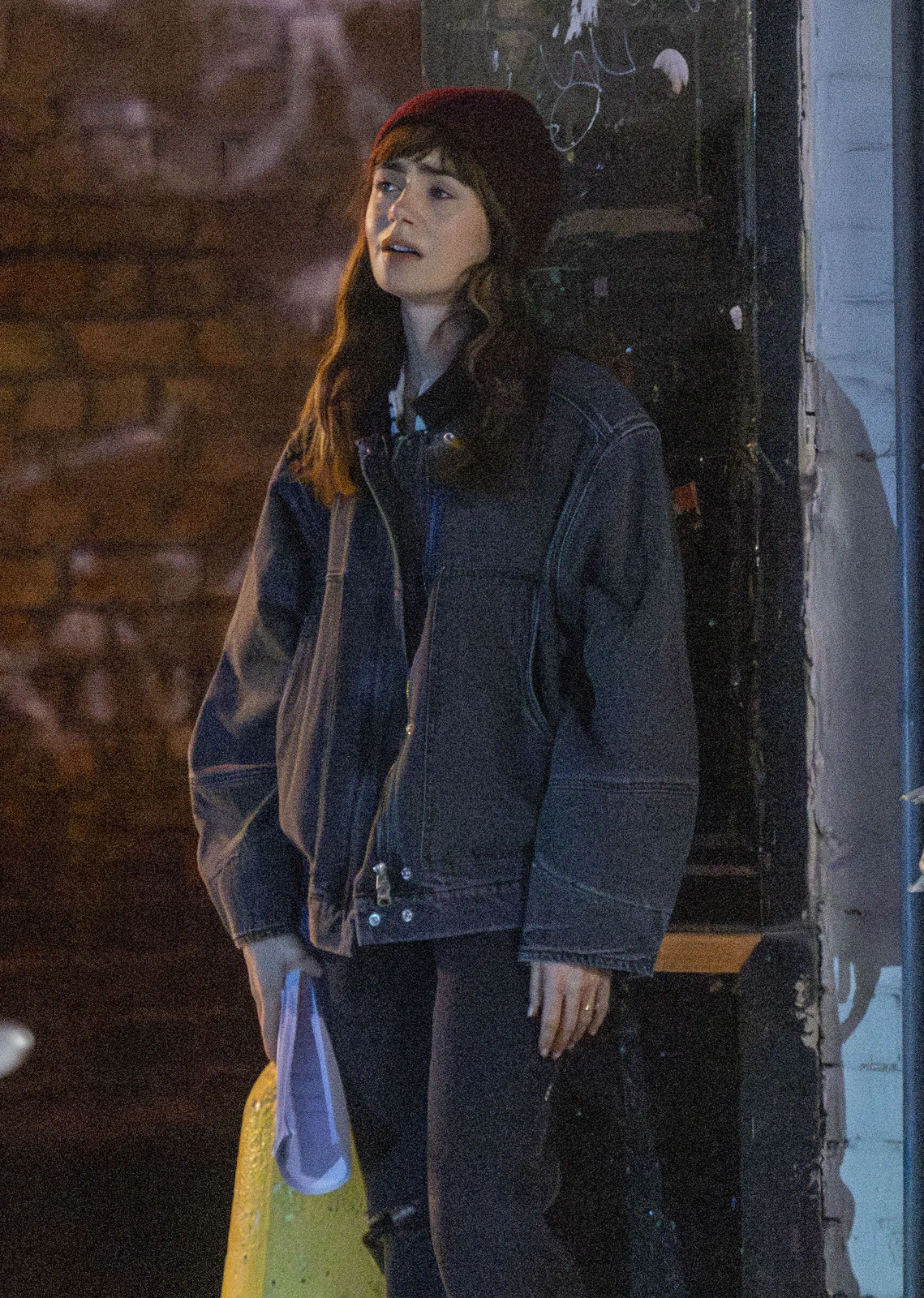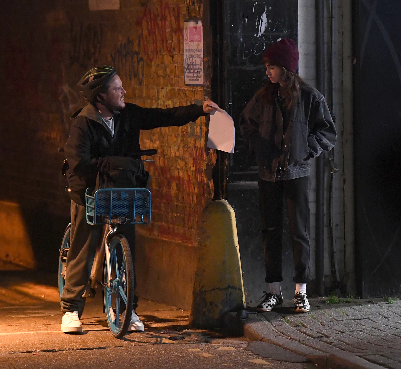 Lily Collins Films Intense Drug-Buying Scene for ‘Close Personal Friends’ in London, England 09-26-2025