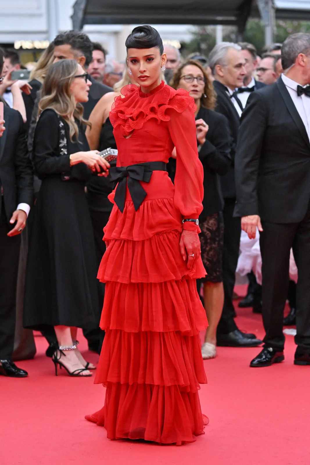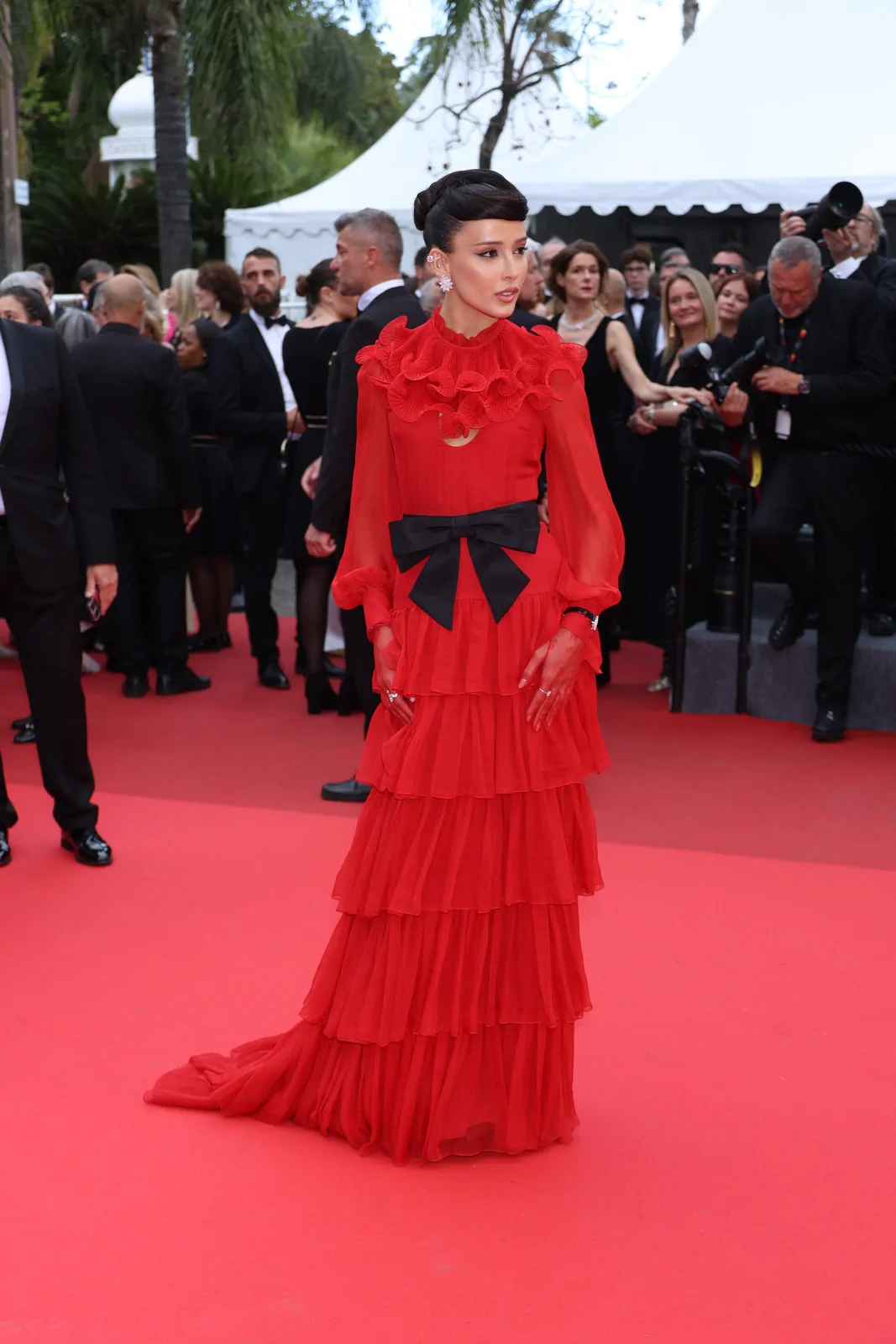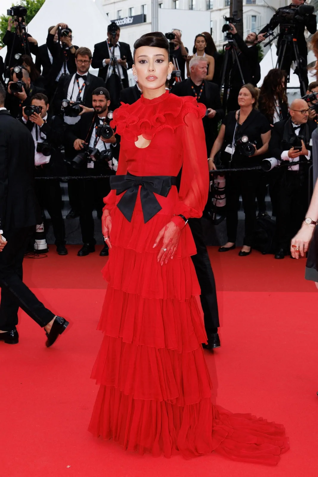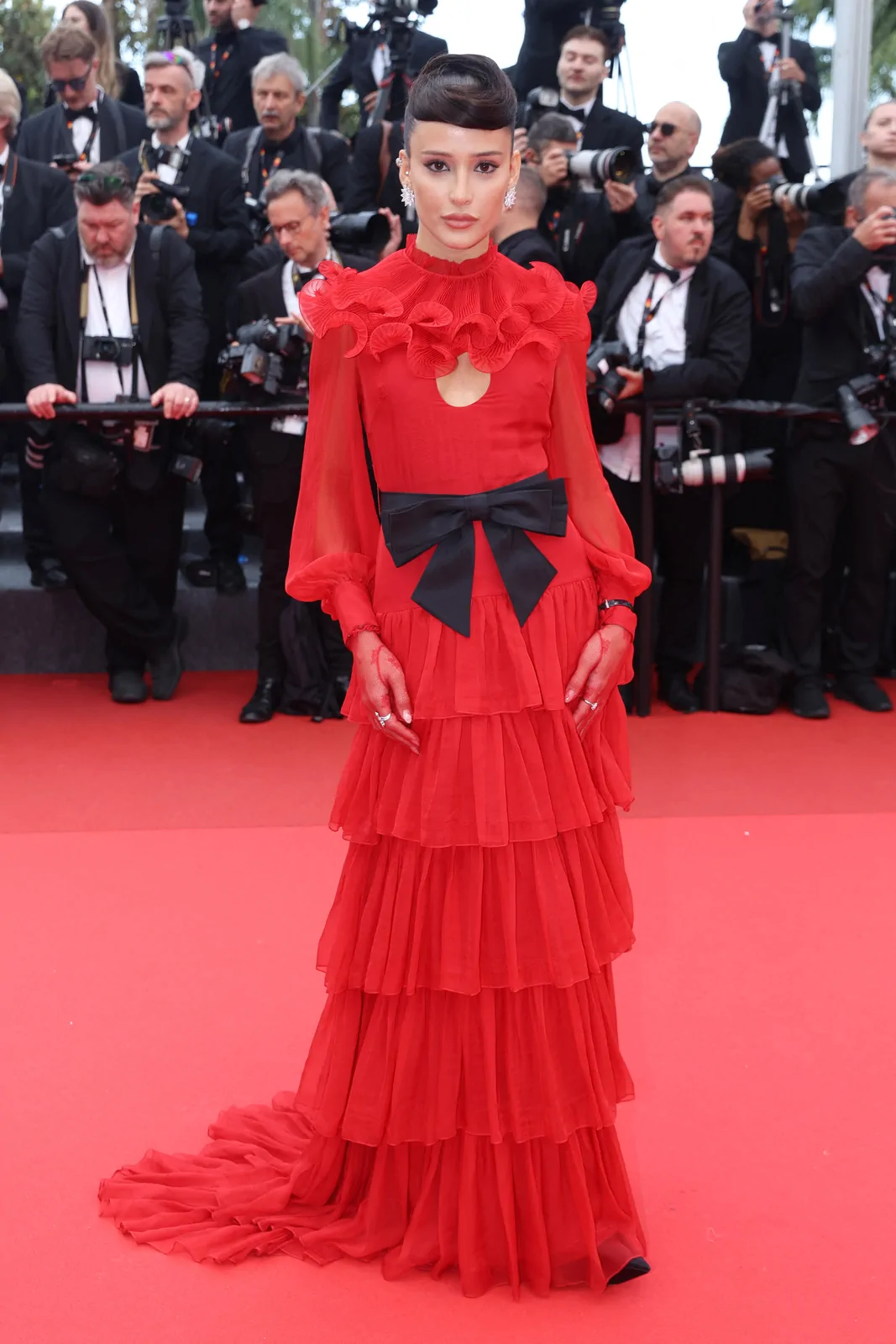 At the 78th Cannes Film Festival on May 17, 2025, Livia Nunes illuminated the red carpet during the premiere of Nouvelle Vague (New Wave) with a style that seamlessly merged cinematic homage and contemporary luxury. Embracing a look from Maison Valentino Spring 2025, her ensemble was crafted to echo the bold innovation of the French New Wave while nodding to the classic elegance of a bygone era. The design, styled by Pedro Sales in combination with statement Chopard jewelry, presented a graceful blend of fluid silhouettes and precise tailoring that commanded attention in one of cinema’s most celebrated settings.