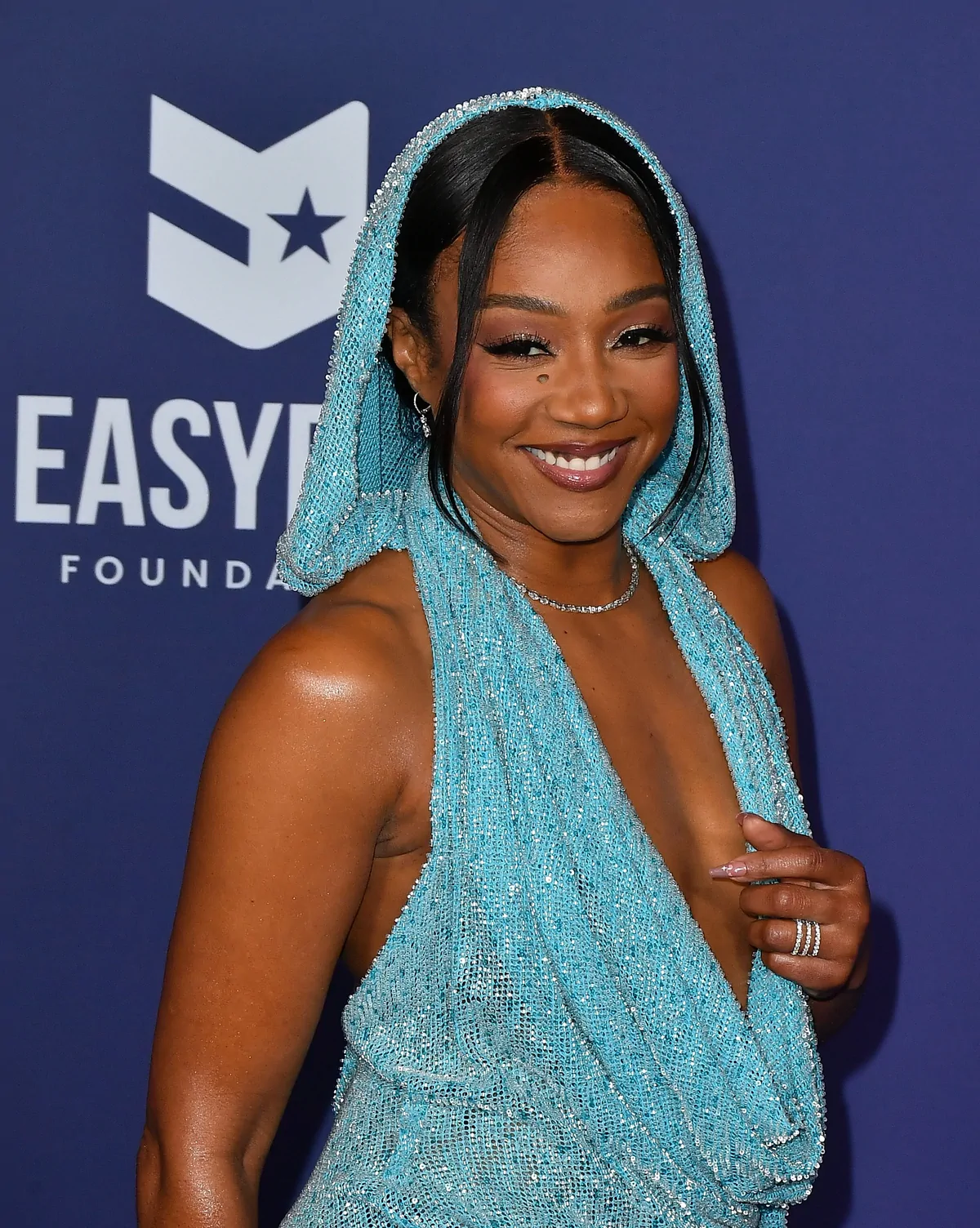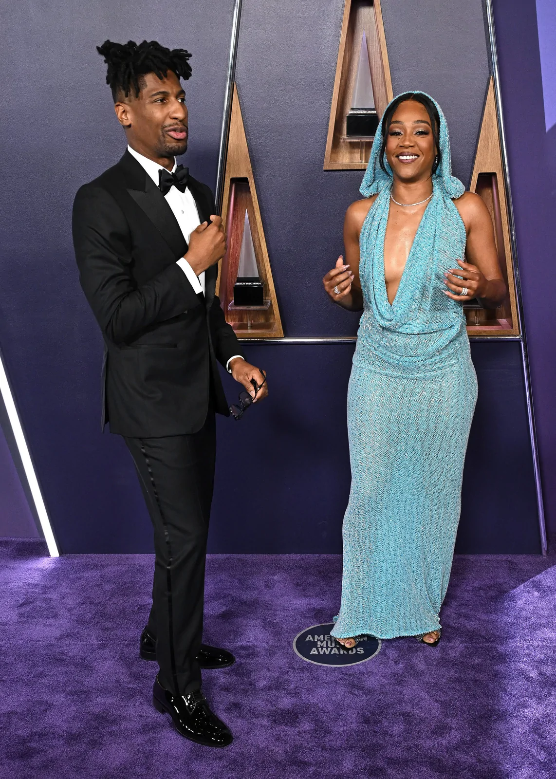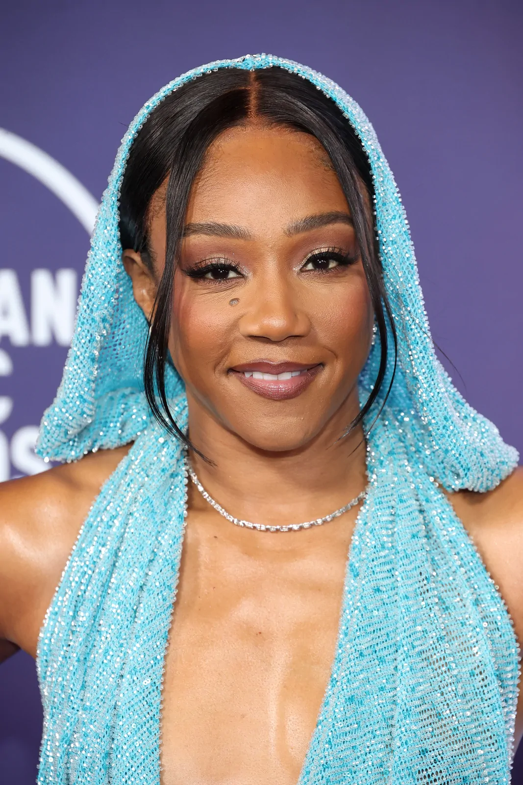 At the 2025 American Music Awards on May 26 in Las Vegas, Tiffany Haddish proved once again that she can effortlessly blend high-fashion elegance with her signature humor and magnetic stage presence. Arriving as one of the evening’s standout presenters, she donned a striking floor-length knit blue dress from Bronx and Banco. The dress, crafted with teal threads interwoven with silver and darker blue hues, offered a fresh update on red carpet chic—effortlessly marrying playful vibes with a refined silhouette. Completing her look were open-toe, beaded mules by Giuseppe Zanotti, which added a dazzling element and reinforced her status as a red carpet style icon.