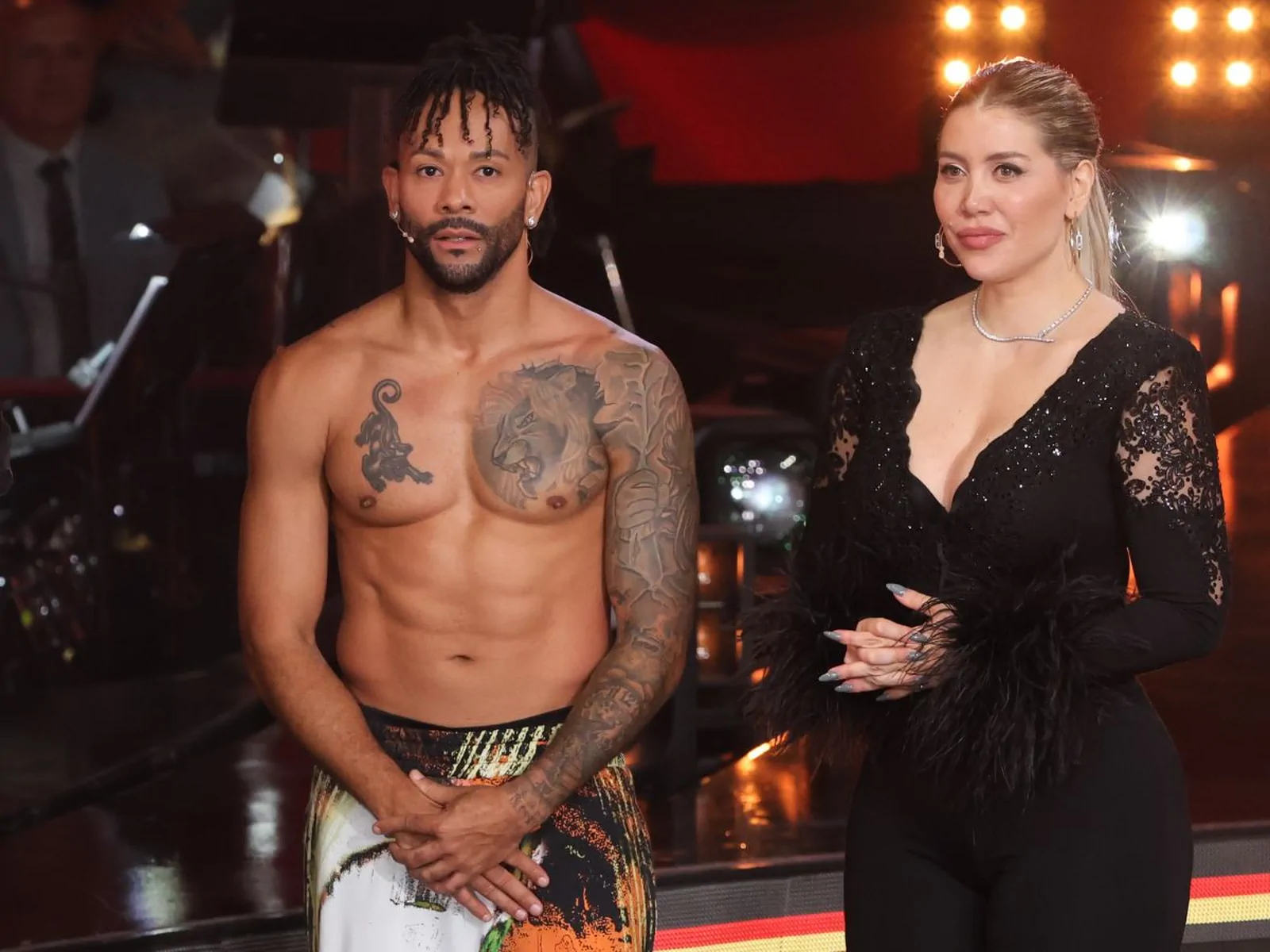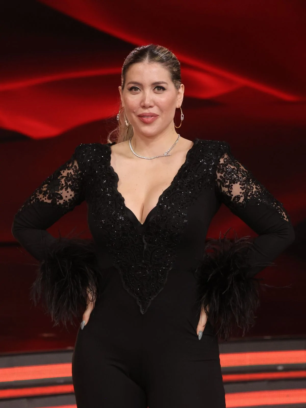Making a powerful return to the dance floor, Wanda embraced the energy of the night with a compelling samba routine that left the audience spellbound. Her performance, marked by an exquisite blend of technical precision and raw emotion, was complemented by her standout ensemble—a chic black jumpsuit featuring a daring V-neck and subtle feather detailing on the cuffs, paired with elegant nude heels and a sleek, polished ponytail. This look not only underscored her fashion-forward sensibility but also became a visual testament to her personal evolution and strength.
